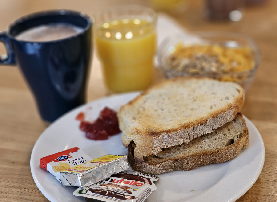 조식은 시리얼, 토스트, 핫초코, 오렌지쥬스를 맛볼수있습니다